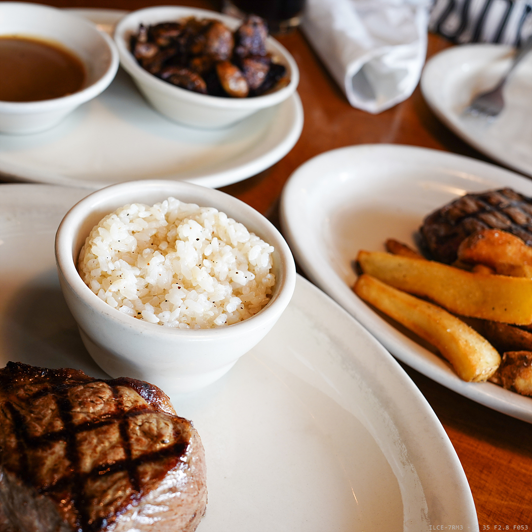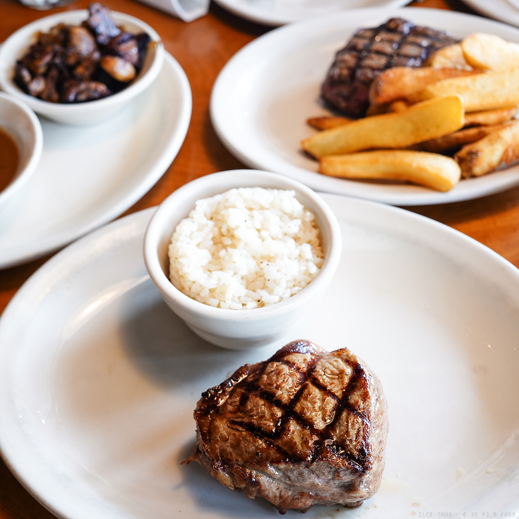 스테이크 두 개 + 사이드(샐러드) 하나 정도 하면 보통 8만원 대로 나오는 듯.