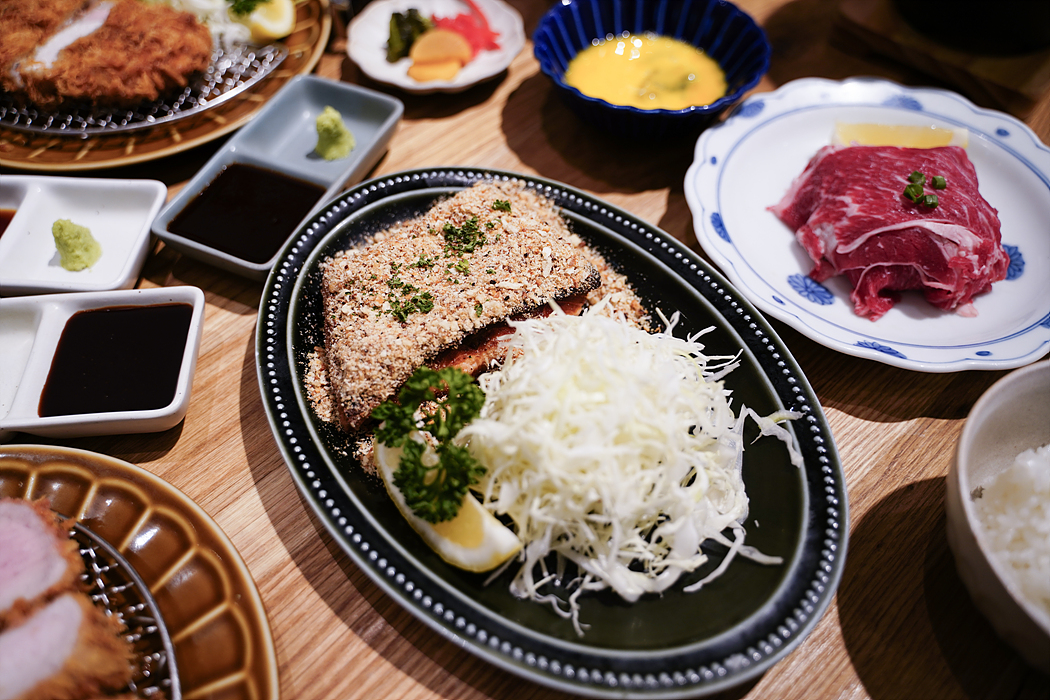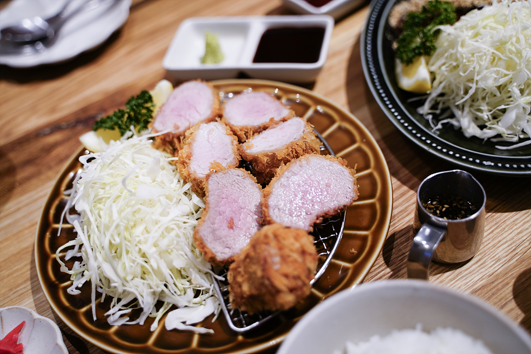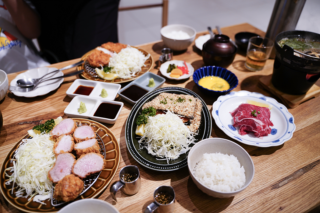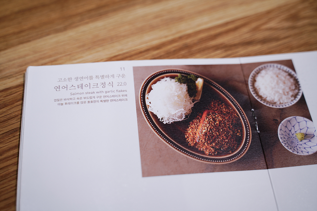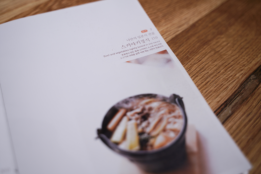 히레가츠정식, 스키야키정식, 연어스테이크정식, 로스가츠정식 시켰음.
