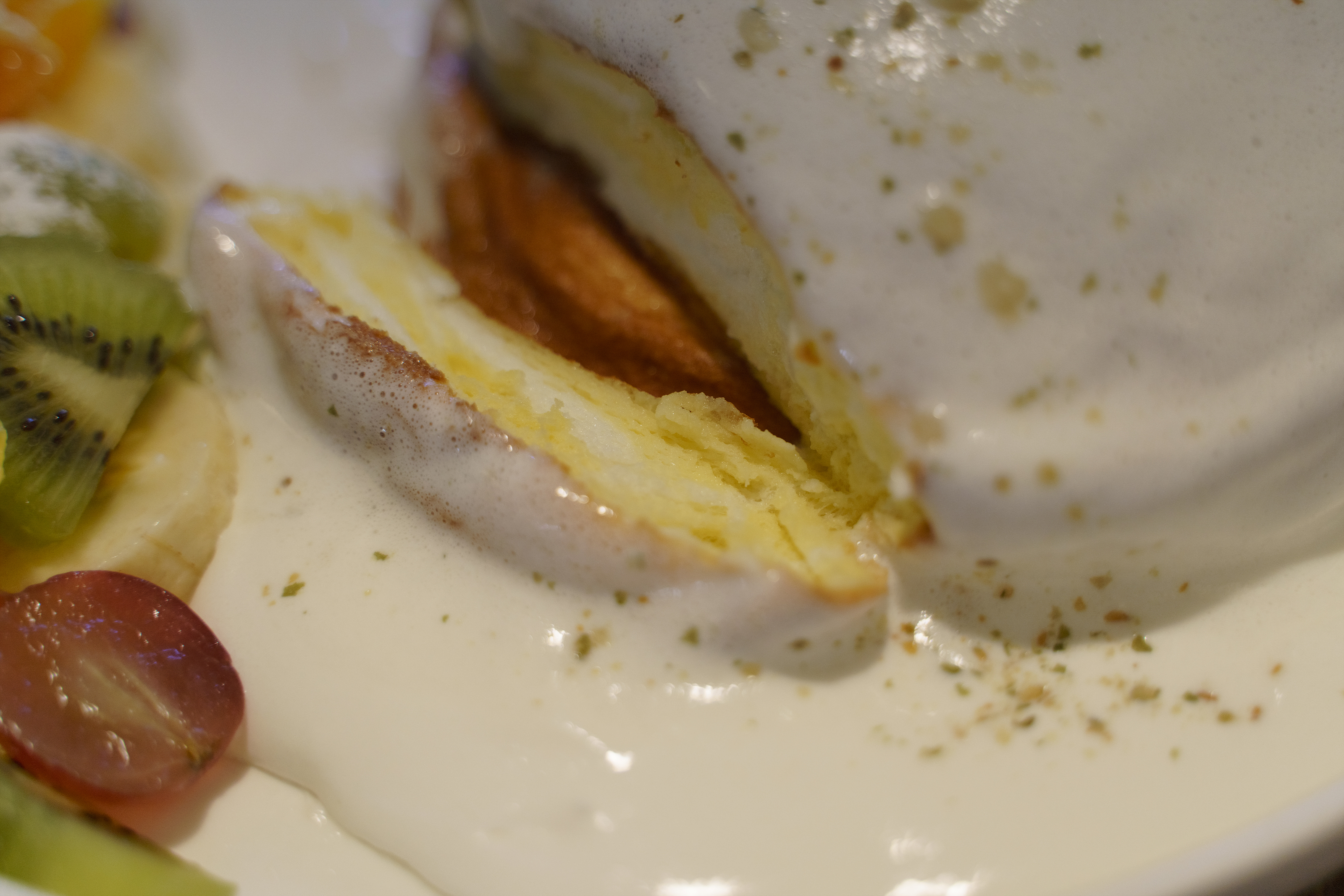 뜨거운 건 아닌데 아직 따뜻한 기운이 남아있어서 크림이 빠른 속도로 흘러내리기 시작함.