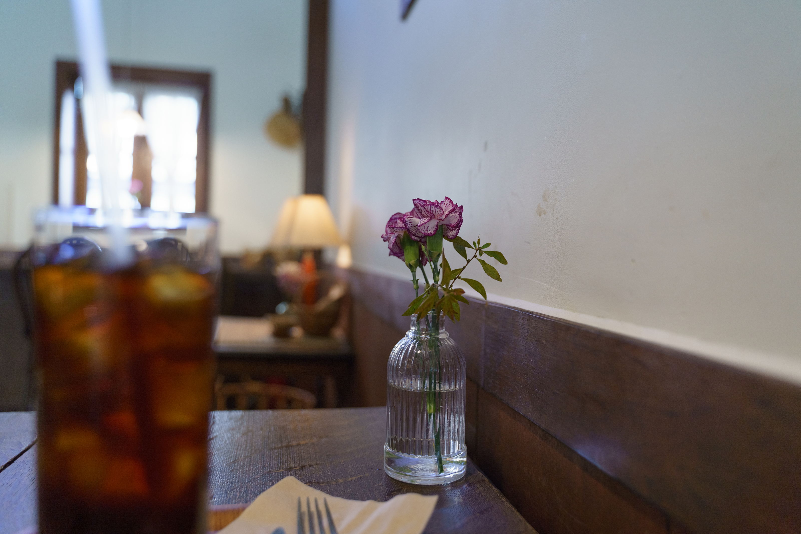 테이블의 꽃을 바꿔주고 갔음.