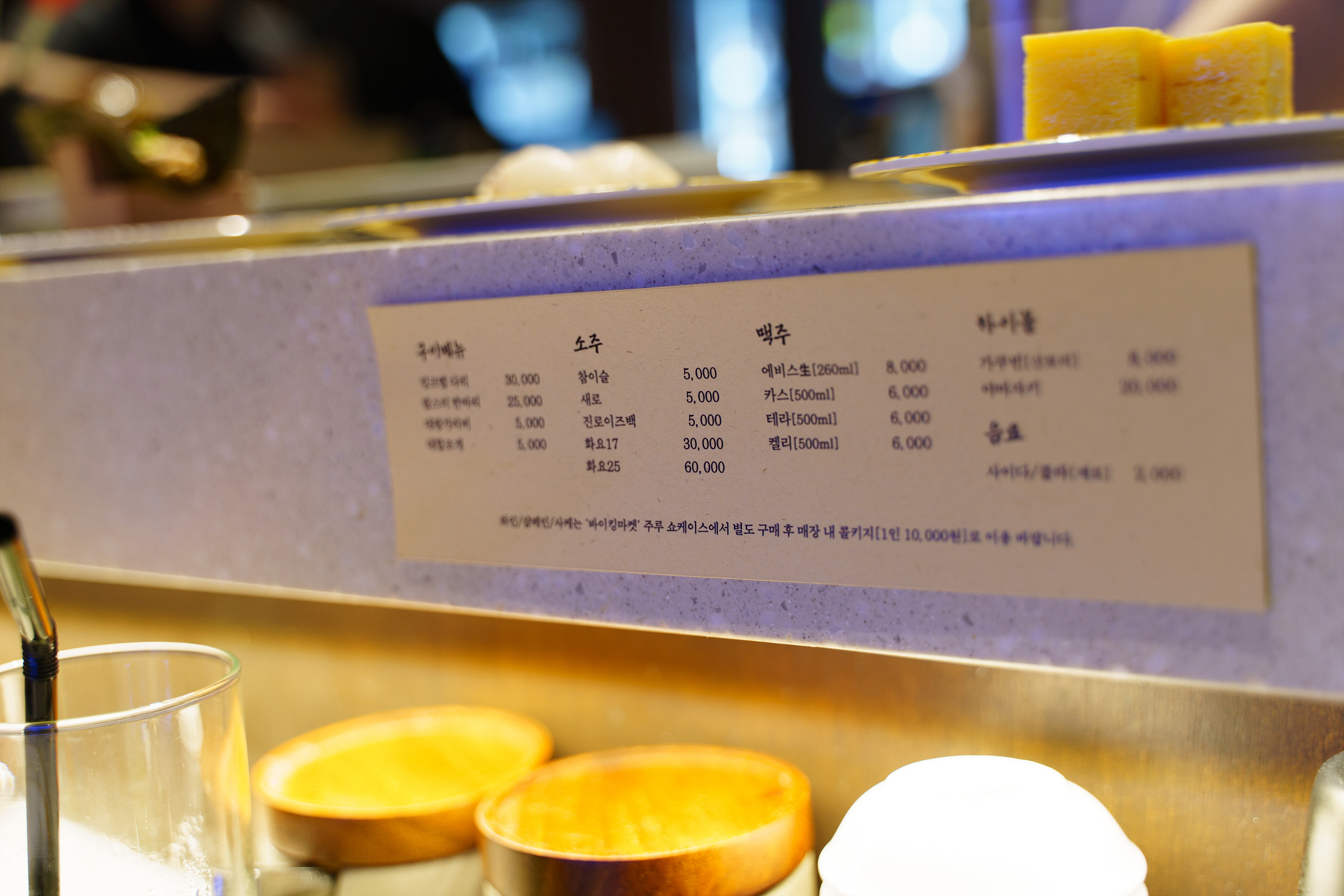 우니 올라간 건 초반에 보이자마자 집어야한다. 처음 한 두번 먹고 나니 그 다음부터는 레일 위에서 사라짐. 따로 주문하면 주는지 모르겠음, 다른 것도 먹을 게 충분해서 굳이 생각을 안 해서.