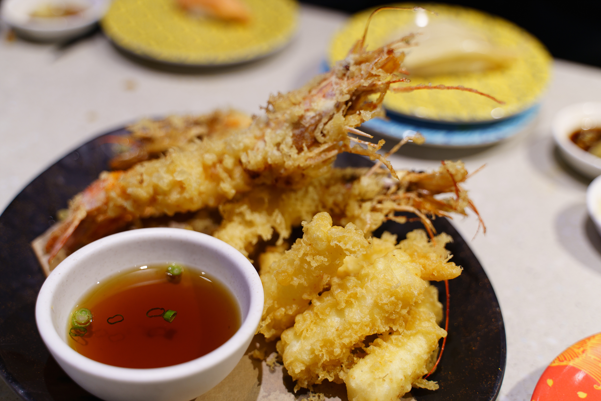 먹다보면 중간에 인원 수 맞춰서 튀김 나옴. 새우랑 오징어. 둘 다 엄청 맛있다!는 아니고, 그냥 깨끗하고 괜찮은 튀김이었음.